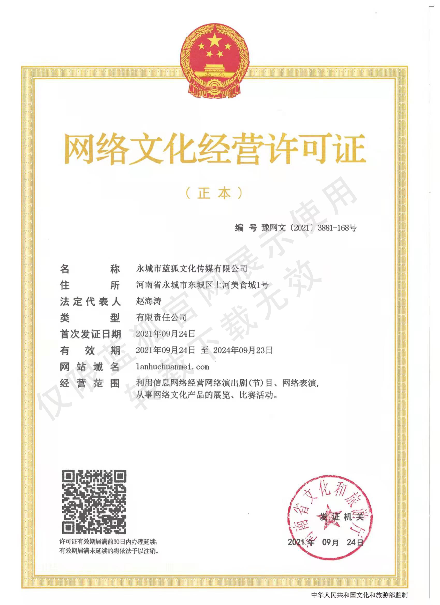 蓝狐文化传媒有限公司是一家具备文化传媒专业化运作和文化产业规模化经营的新兴文化艺术创作公司,拥有大量优秀人才,各类资源设施储备充足,专业培养打造网红、艺人、演艺经纪人,同时包含影视制作、商业宣传等传媒工作。本公司坚持弘扬社会主义核心价值观、以传播绿色文化为己任,多年来积累了丰富的经验、打造出大量成功案例,在同行业中享有优良声誉,品牌形象获得社会各界普遍认可。